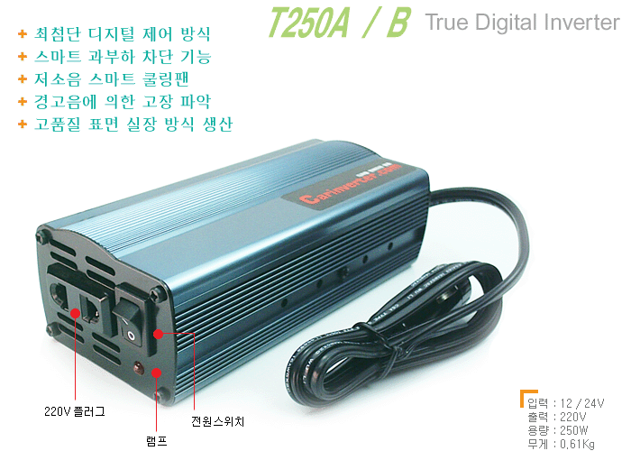 인버터가 정상 동작하는지 확인하였으면 부하 기기의 전원 코드를 인버터의 출력 소켓에 연결하여 줍니다. 그리고 기기의 전원 스위치를 켜서 사용합니다.