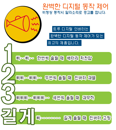 인버터의 전원 스위치를 켜서 램프가 켜지고 정상 동작하는지 확인하여 줍니다.