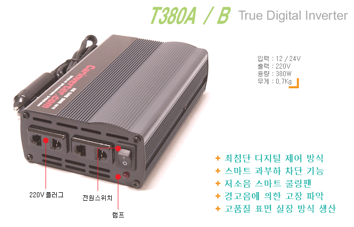 인버터의 전원 스위치를 켜서 램프가 켜지고 정상 동작하는지 확인하여 줍니다.